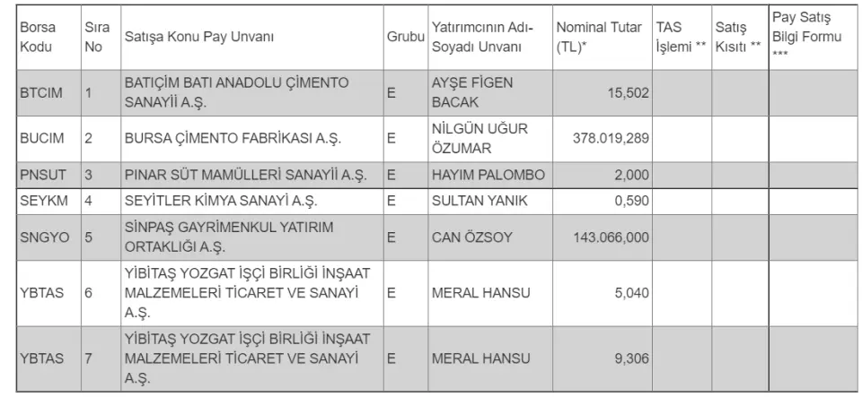 #BTCIM, #BUCIM, #PNSUT, #SEYKM, #SNGYO, #YBTAS