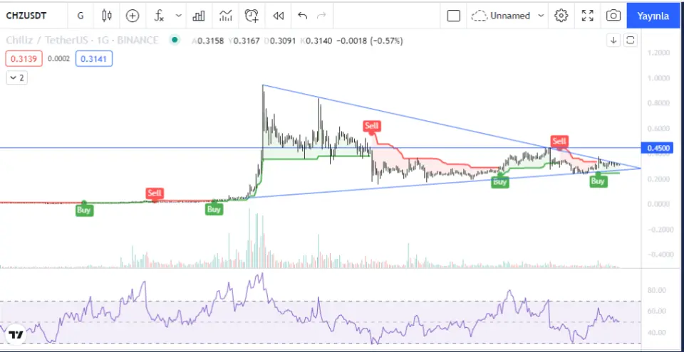 Teknik olarak al sinyali veren Chiliz coin de yukarı hareket olması durumunda 0,45 seviyesi hedef olarak görünüyor.