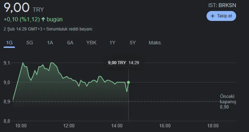Hisse %1 civarında seyrederken 9 TL'den işlem görüyor