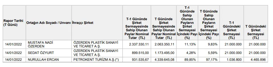 Ortaklık yapısı değişen diğer şirket ise Özerden Plastik