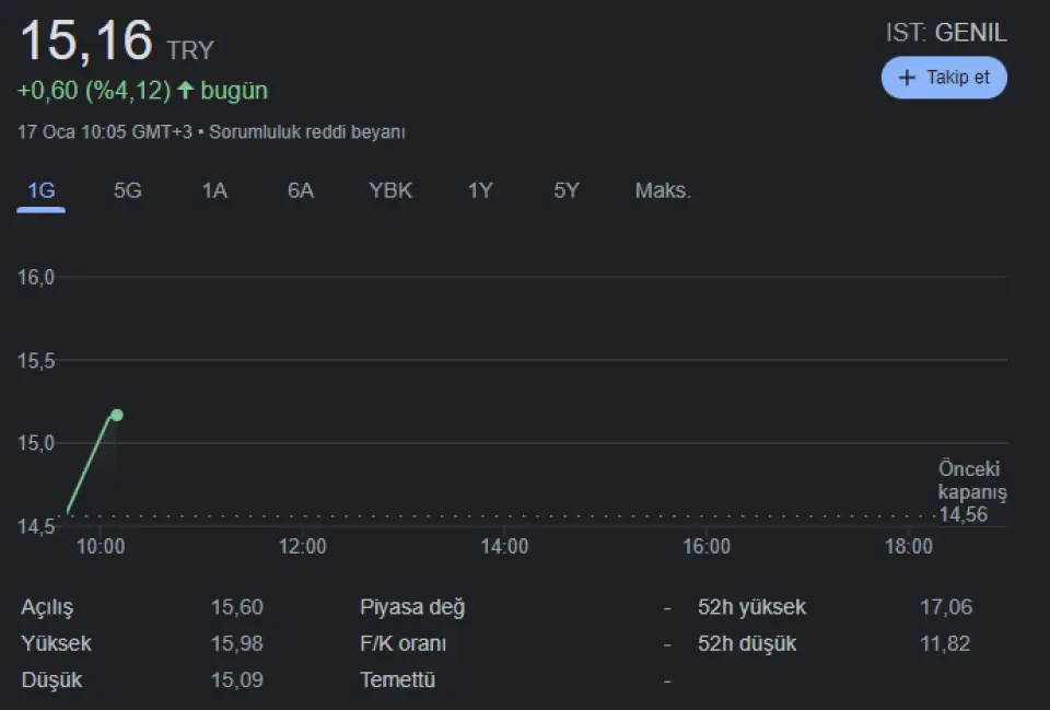 Hisse bu haberden sonra %4,30 artarak 15,20 TL'yi gördü hissenin günü nasıl kapatacağı merak konusuyken gelişmelerden bizleri takip ederek haberdar olabilirsiniz...