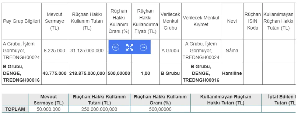 - Nakit olarak arttırılan sermayeyi temsil eden paylara ilişkin yeni pay alma haklarının kullandırılmasından sonra kalan A grubu Payların Şirket Ana sözleşmesinin 7. Maddesine göre " Rüçhan haklarının kullanımından sonra kalan A grubu paylar yönetim kurulunca diğer A grubu pay sahiplerine teklif edilecektir". kalan B grubu payların, Tasarruf Sahiplerine Satış Duyurusunda ilan edilecek tarihlerde 2 (iki) iş günü süreyle nominal değerden düşük olmamak üzere Borsa İstanbul A.Ş.'de Birincil,Piyasa'da,oluşacak,fiyattan,satılmasına,