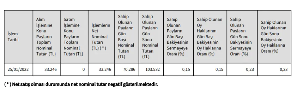 toplam nominal tutarlı alış işlemi ve/veya 0 TL toplam nominal tutarlı satış işlemi tarafımca/ortaklığımızca gerçekleştirilmiştir. Bu