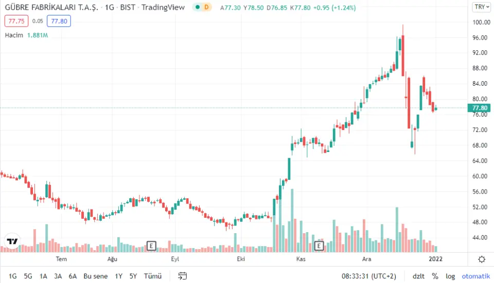 GÜBRE FABRİKALARI TÜRK ANONİM ŞİRKETİ, katı gübreler, sıvı gübreler, toz bazlı gübreler ve organik gübreler dahil kimyevi gübrelerin üretimi ve pazarlanması ile iştigal eden Türkiye merkezli bir şirkettir. Ayrıca, çiftçilere toprak analizi hizmetleri vermekte ve kullanılacak uygun gübre hakkında tavsiyelerde bulunmaktadır. Şirketin üretim faaliyetleri torbalama, depolama ve saklama tesislerinin yanı sıra esasen üç farklı tesisten oluşan Yarımca tesisinde gerçekleştirilmektedir. Buna ek olarak, sıvı ve toz bazlı gübreler İzmir fabrikasında üretilmekte ve İzmir, İskenderun ve Samsun'da torbalanmakta ve depolanmaktadır. Ayrıca, Şirket yükleme ve boşaltma hizmetleri de vermektedir. Şirketin iştirakleri ve bağlı şirketleri arasında Razi Petrochemical, Negmar Denizcilik Yatırım A.Ş. ve Tarkim Bitki Koruma Sanayi ve Ticaret A.Ş. bulunmaktadır.