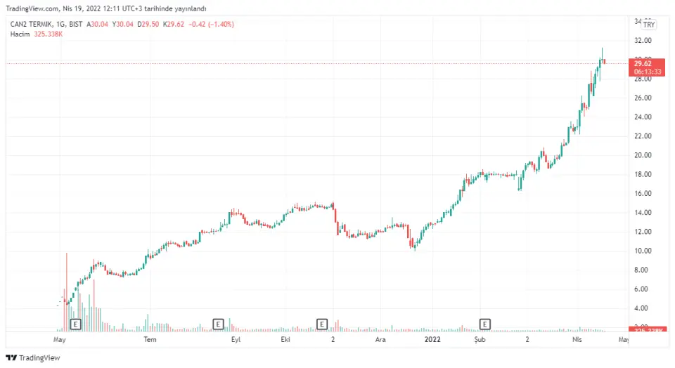 Cante (Çan 2 termik ) hisselerinde halka arz sonrası gelen yükseliş rekor düzeye ulaştı 4,29 seviyesinden halka arz olan hisseler 30 TL seviyesine kadar yükselme başarısı gösterdi.