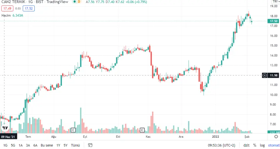 2022 yılına da hızlı bir giriş yapan CANTE bir ay gibi kısa sürede %40 seviyesinde prim yaparak 17,70 seviyelerinin üzerine çıktı.