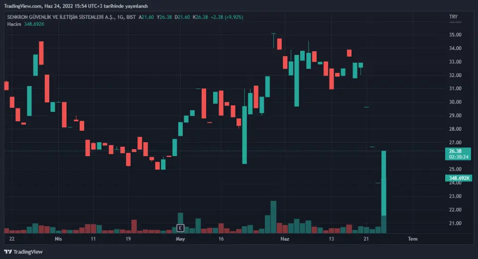 Şirketimiz Yönetim Kurulu tarafından 21.06.2022 tarihinde şirket merkezimizde yapılmış olan toplantıda; şirketimiz Senkron Siber Güvenlik Yazılım ve Bilişim Çözümleri A.Ş’nin 28.03.2022 tarihli yakın izleme pazarında işlem gören şirket paylarının Alt Pazar’a geçişi için yaptığı başvuruya cevap olarak; Borsa İstanbul A.Ş Kotasyon Direktörlüğü tarafından 20.06.2022 tarihli ve E-18454353-100.06 (100.06)-9548 sayılı şirketimize gönderilen yazıda “Vadesi geçmiş kamu ve finansal borçları bulunması sebebiyle Kotasyon Yönergesi’nin 36/1. maddesi kapsamında YİP’e alınma gerekçelerinin henüz tümüyle ortadan kalkmadığı ve 8/1-c maddesindeki koşulun sağlanamadığı dikkate alınarak, tarafımıza ulaşan şirketimiz paylarının Yakın İzleme Pazarı’nda işlem görmeye devam etmesi kararı detaylıca görüşülmüştür.