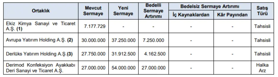 - Ekiz Kimya Sanayi ve Ticaret A.Ş.’nin (Şirket), 35.000.000 TL tutarındaki kayıtlı sermaye tavanı içinde 7.177.729 TL