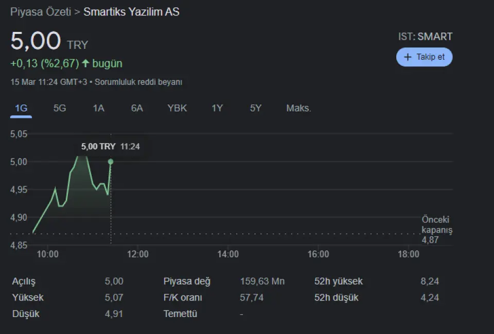 Şirket tarafından yapılan açıklamanın ardın hisse olumlu tepki göstererek %2,67 artışla 5 TL'den işlem görüyor