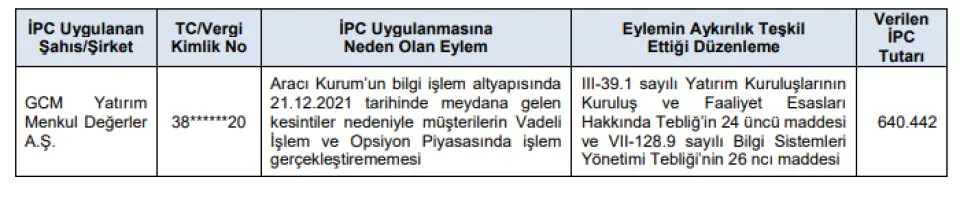 a) GCM Yatırım Menkul Değerler A.Ş. (Aracı Kurum) hakkında yapılan inceleme sonucunda aşağıdaki tabloda yer alan
