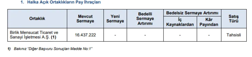 SPK Brmen tahsisli sermaye artırım talebini onayladı Birlik Mensucat, sermaye artırımına giderek sermayesini 27.837.222 TL’ye çıkarmış oldu detaylar haberimizde