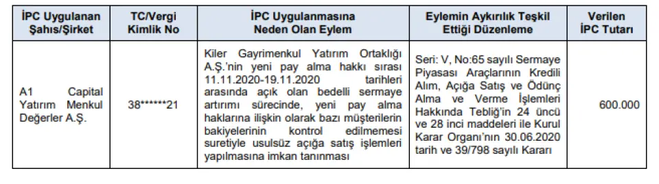 SPK Kiler GYO paylarında yapılan usulsüzlüğe acımadı 1 aracı kurum ve 3 kişiye para cezası uyguladı. İşte merak edilenler.. ...