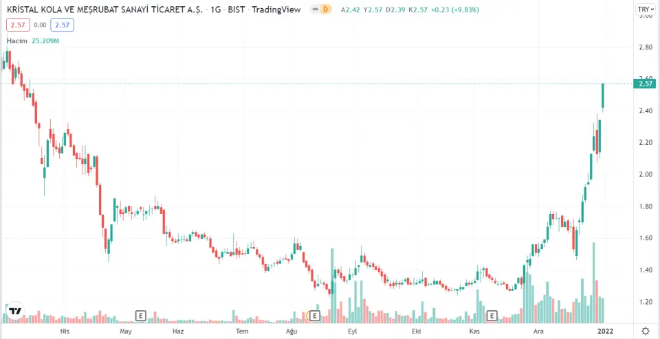 Sermaye Piyasası Kurulu kararı uyarınca devreye alınan Volatilite Bazlı Tedbir Sistemi (VBTS) kapsamında KRSTL.E payları 03/01/2022 tarihli işlemlerden (seans başından) 02/02/2022 tarihli işlemlere (seans sonuna) kadar açığa satışa ve kredili işlemlere konu edilemeyecektir.