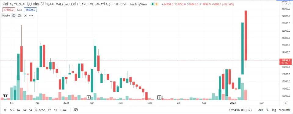BİST tarafından Kamuyu Aydınlatma Platformu'na (KAP) gönderilen açıklamaya göre, Yibitaş İnşaat Malzeme (#YBTAS) payları 02/02/2022 tarihli işlemlerden (seans başından) 01/03/2022 tarihli işlemlere (seans sonuna) kadar emir paketi tedbiri ile işlem görecek.