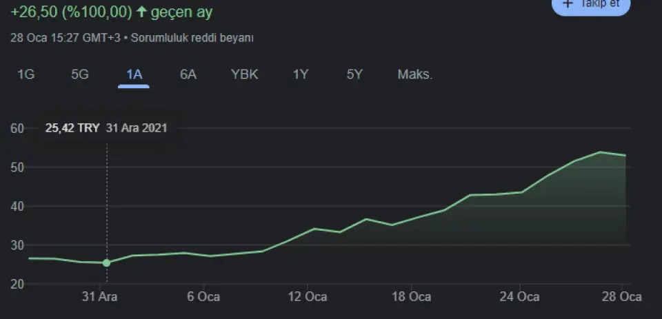 - 2022 de her gün artı kapatan hissede yatırımcıların yüzü gülüyor.