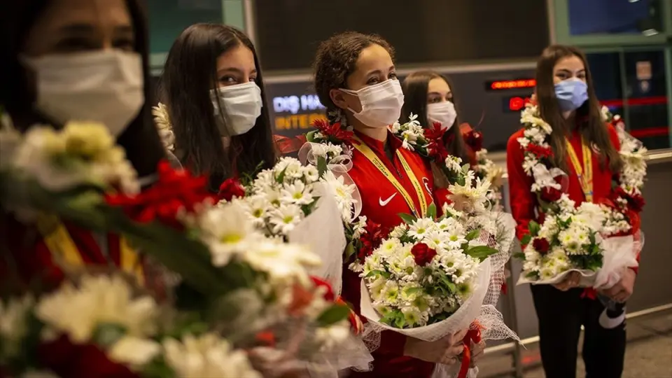 Ritmik Cimnastik Grup Milli Takımı'nın 4 sporcusu ile Milli Takımlar Genel Koordinatörü Ülker Bağışlayan, organizasyona nasıl hazırlandıkları, şampiyonluğun ardından hissettikleri ve hedeflerine ilişkin AA muhabirine açıklamalarda bulundu.