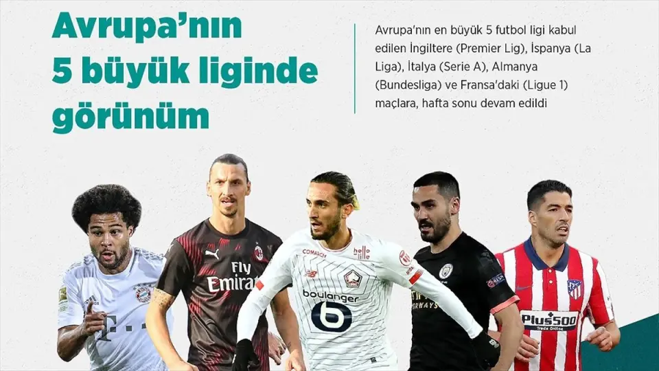 İSTANBUL(AA) - İngiltere'de Manchester City, İspanya'da Atletico Madrid, İtalya'da Milan, Almanya'da Bayern Münih, Fransa'da ise Lille, puan tablosunun zirvesinde yer aldı.