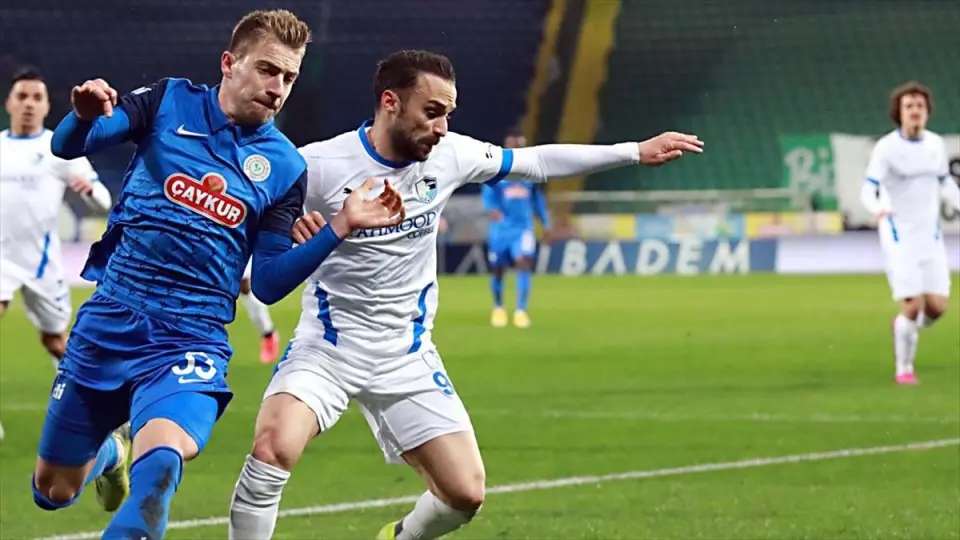 RİZE (AA) - 9. dakikada kazanılan faul atışında Novikovas'ın ceza sahası sağ çaprazına ortasında, Da Costa topu kafa ile altıpas içerisine indirdi. Omolo'nun vuruşu istediği gibi olmayınca, meşin yuvarlak üsten dışarı çıktı.