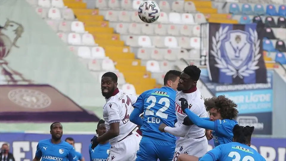 ERZURUM (AA) - Büyükşehir Belediye Erzurumspor-Trabzonspor karşılaşmasının 5. dakikasında ev sahibi ekipte Emrah Başsan, ceza sahası içinde topa sert vurdu. Kaleci Uğurcan Çakır, meşin yuvarlağı çeldi.