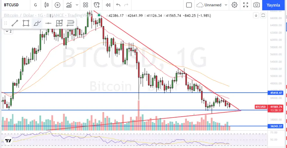 Bitcoin, death cross’un tamamlanmasına yaklaşıyor. Bitcoin fiyatı, 13 Ocak’ta 42 bin 325 dolara düştükten sonra şu anda 41900 dolardan işlem görüyor.