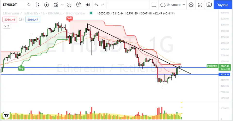 3000 dolar psikolojik direncini test eden Ethereum yukarı hareketine devam edecek mi?