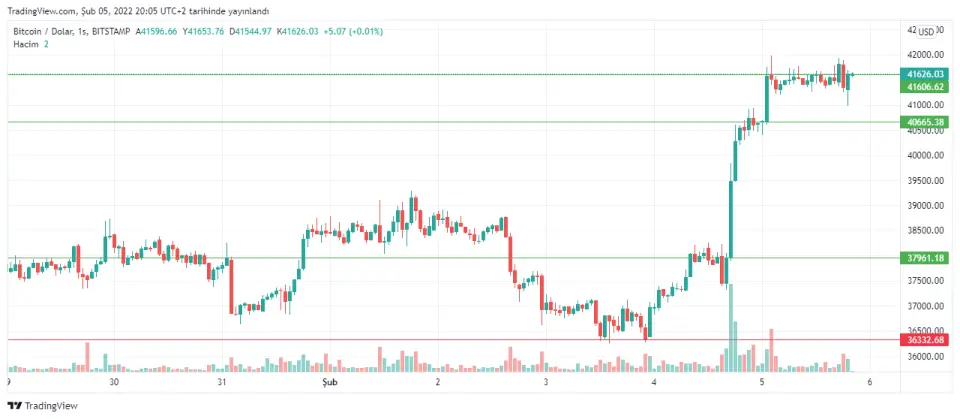 Bitcoin (BTC) yaşadığı Death Cross düşüşünde 36,300 $ seviyelerini gördü. Coinlerin hareketlerini büyük ölçüde etkileyen Bitcoin sunduğu alım fırsatından sonra yükselmeye hızla devam ediyor. 30.000'li seviyeleri geride bırakmak için Bitcoin 3 kere sıçrama yaşadı. Şuanda 41.641,20 $ seviyesinden işlem gören Bitcoin yatay hareketlere başladı. Kısa bir dinlenmeden sonra yoluna kaldığı yerden devam edecek gibi görünüyor.