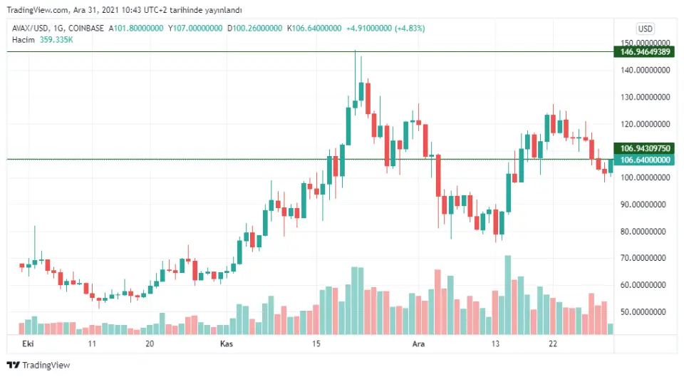 15 kasım haftası, 147 dolar tarihi zirvesini gören AVAX , ardından gelen düzeltmeyle ,Aralık ayında 75 dolara kadar düştü. Şu anda 105 dolardan işlem görüyor."