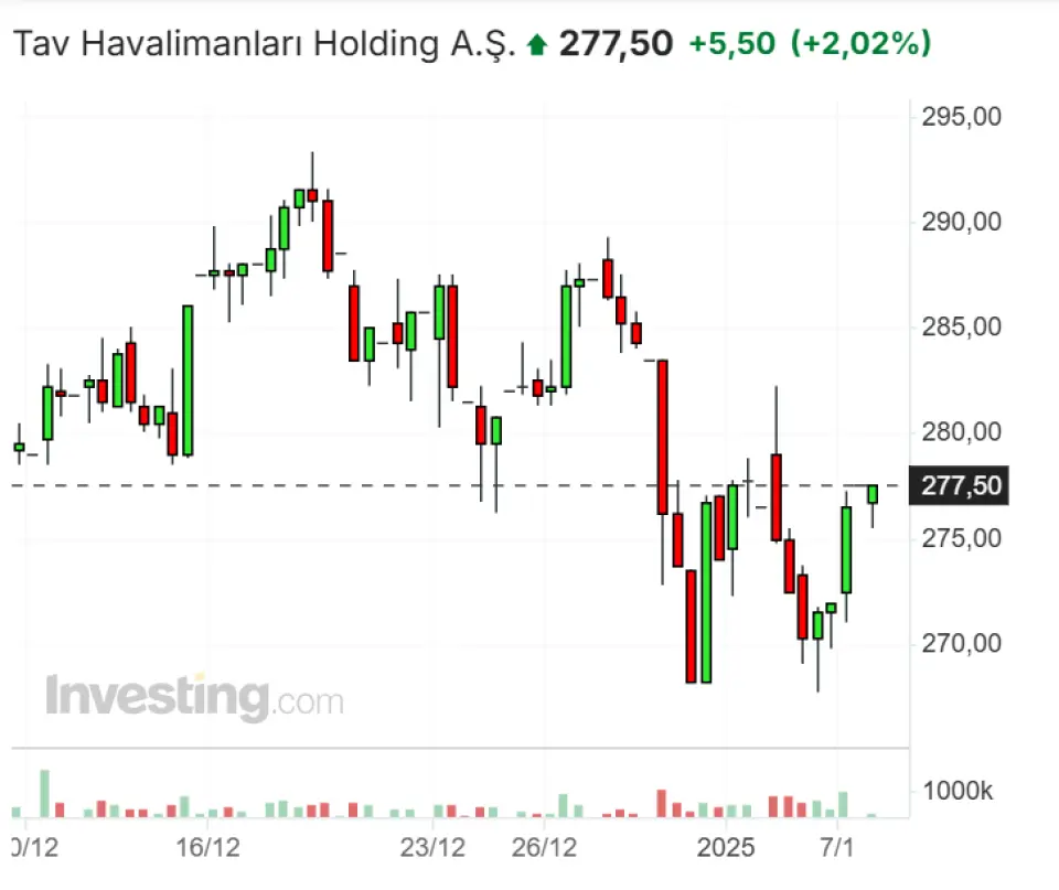 TAVHL 1 AYLIK DEĞİŞİM GRAFİĞİ