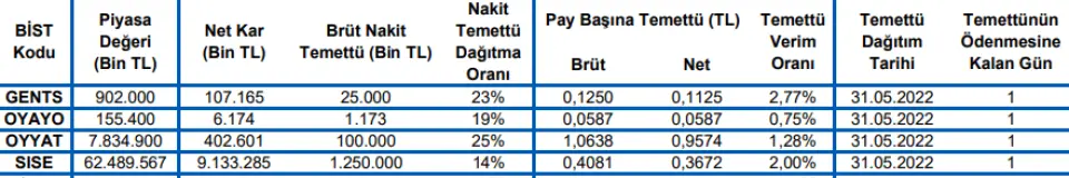 4 şirketten temettü geliyor!! 1,5 Milyar temettü yatırımcılarla buluşuyor!! Borsa İstanbul'da işlem gören hisselerin bilançoları geldikçe temettü verip vermeyecekleri belli oldu. Temettü ödeme kararı alan şirketlerinde temettü tarihleri belli oldu. Yatırımcısına temettü dağıtacak dört şirket yarın temettü dağıtıyor. Temettü verimi ne kadar? Ne zaman temettü dağıtacak? Temettü verimi ne kadar? Tüm detayları ile... 4 şirketten temettü