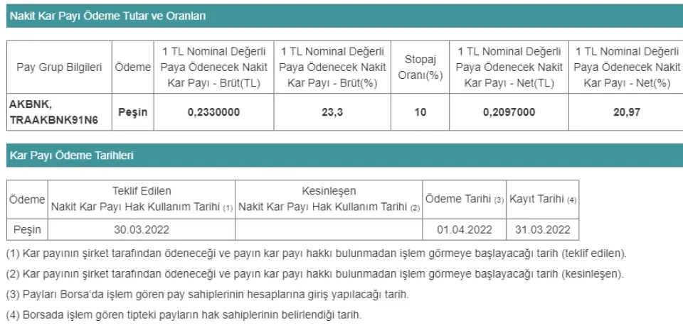 · Nakit kar payı ödemelerine 30.03.2022 tarihinden itibaren başlanılması,