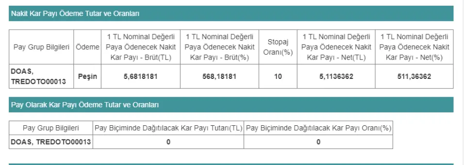 Borsa İstanbul'da işlem gören hisselerden Doas temettü dağıtacak. Temettü dağıtacak şirketlerin bilançoları ile birlikte temettü oranı açıklandı temettü verimi %8 olarak öne çı...