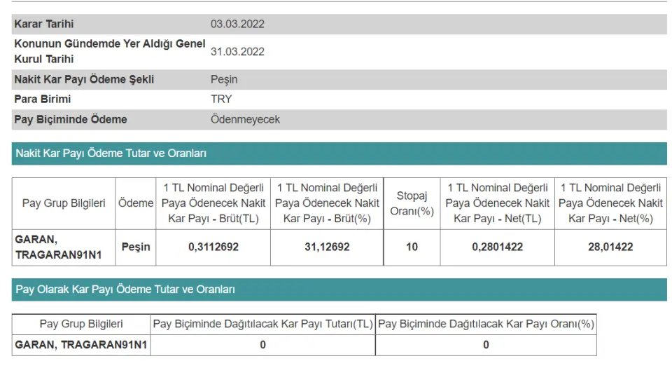 Garanti Bankası #GARAN milyarlık temettü dağıtıyor! TAM 1.3 MİLYAR