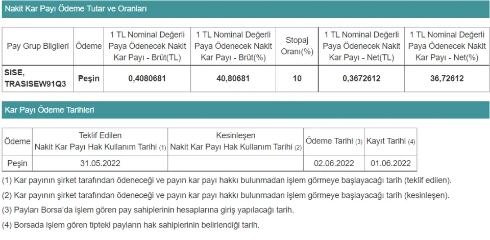 Borsanın devlerinden Şişe Cam temettü dağıtıyor! Tam %40. Şirket yarını hak kullanım tarihi dağıtımı ise 2 Haziran olarak belirledi. Tüm detaylar ve daha fazlası...