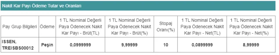 Hissedarlarımıza %10,00 nispetinde ve 1 TL nominal değerde bir adet hisse senedine Brüt 0,10 TL, net 0,09 TL nakit temettü ödenmesinin Olağan Genel Kurulun onayına sunulması hususunda