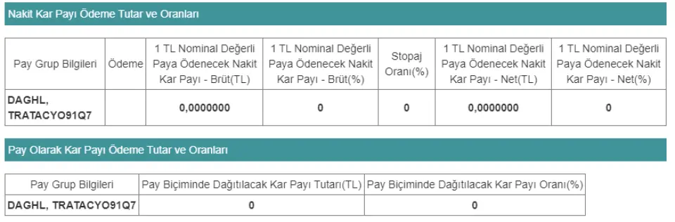 DAGİ YATIRIM HOLDİNG A.Ş. DAGHL şirketi yaptığı KAP açıklamasında kâr payı dağıtmayacağını açıkladı! Yapılan KAP açıklamasına göre;