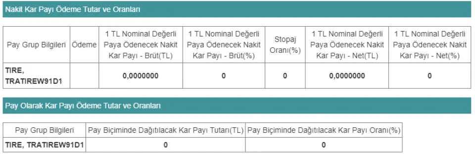 MONDİ TİRE KUTSAN KAĞIT VE AMBALAJ SANAYİ A.Ş. #TIRE, KAP’a yaptığı açıklama ile temettü dağıtmayacağını duyurdu. Şirket tarafından KAP’a yapılan açıklamanın detayları;