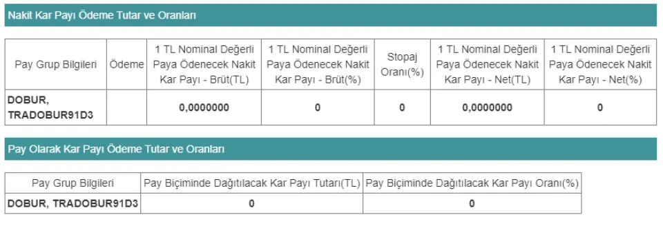 DOĞAN BURADA DERGİ YAYINCILIK VE PAZARLAMA A.Ş. #DOBUR, KAP’a yaptığı açıklama ile temettü dağıtmayacağını duyurdu. Şirket tarafından KAP’a yapılan açıklamanın detayları;