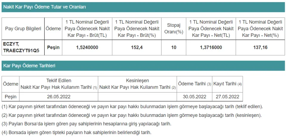 #ECZYT Eczacıbaşı Yatırım'dan 160 milyonluk dev temettü geliyor! TAM %152