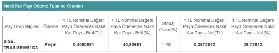 Temettü dağıtacak olan şirket TÜRKİYE ŞİŞE VE CAM FABRİKALARI A.Ş. #SISE