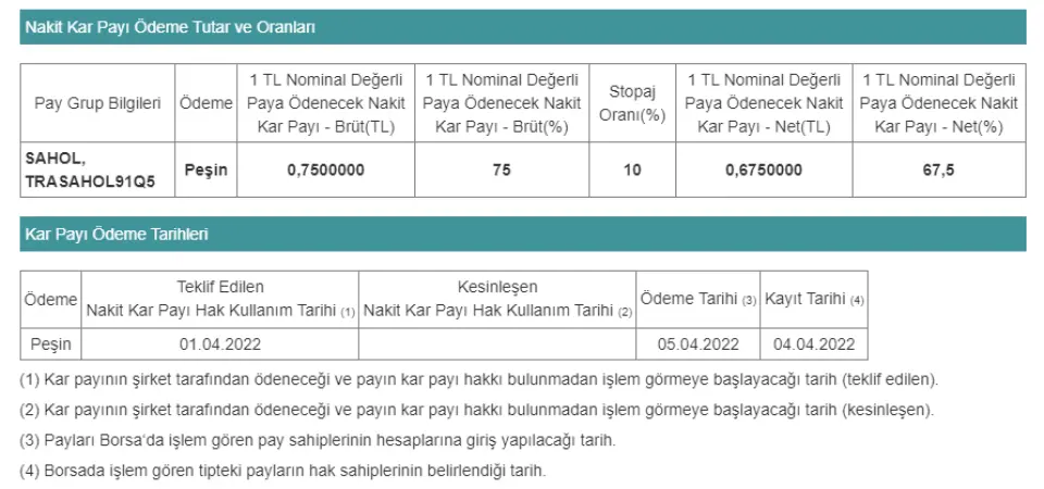 nakit kar payının 1 Nisan 2022 tarihinden itibaren dağıtılması konusunda Genel Kurul'a teklifte bulunulmasına karar verilmiştir.