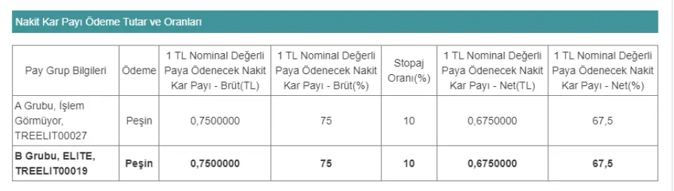 c) Ortaklarımıza 2022 yılında dağıtılacak temettü toplam tutarının 40.500.000 TL'ye tamamlanmasını teminen, geçmiş yıllar karından da 7.921.458 TL'nin dağıtılmasına, toplam 40.500.000 TL tutarındaki brüt kâr payının tamamının nakden ödenmesine, Dolayısıyla alınan karar gereğince 1,00 TL nominal değerli 1 paya 0,75 TL brüt, Gelir Vergisi stopajı düşüldükten sonra 0,675 TL net nakit kar payı ödemelerinin yapılmasına, nakit kar payı kullanım tarihinin 12.04.2022 tarihi olarak belirlenmesine oy birliği ile karar verildi.