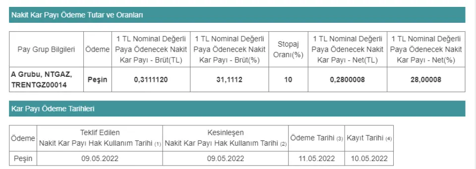 Borsa İstanbul’da işlem gören hisselerden NTGAZ hissesi temettü dağıtıyor dağıtma oranı ile göz dolduran şirket temettü verimi ile de yatırımcıları mu...