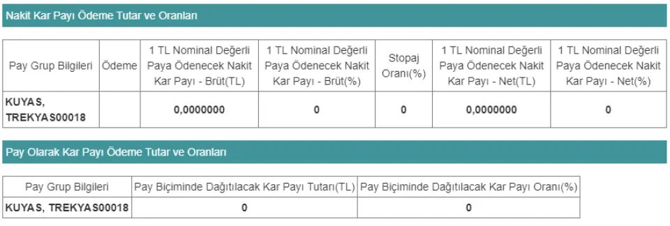 KUYAŞ YATIRIM A.Ş. KUYAS şirketi KAP'a temettü dağıtmayacağını açıkladı işte yapılan açıklama;