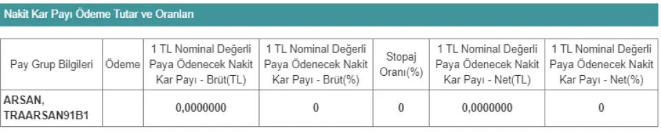 Kar etti ama temettü dağıtmıyor! ARSAN TEKSTİL TİCARET VE SANAYİ A.Ş. (ARSAN) milyonluk kar etti ama kar payı dağıtmıyor. Kamu Aydınlatma Platformuna yaptığı açıklama şu şekildeydi: