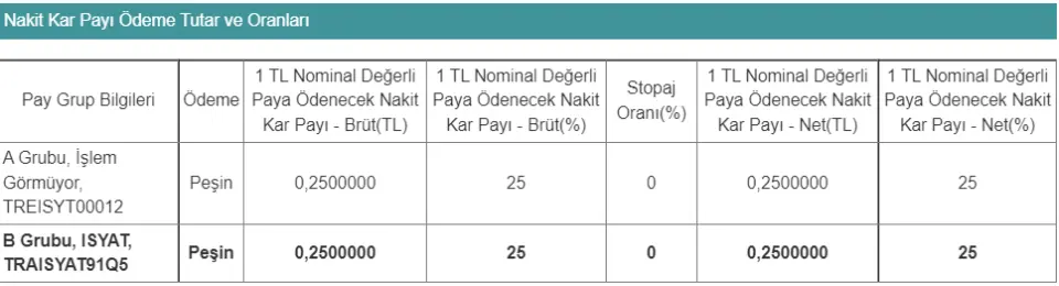 Şirketimizin 01.01.2021 - 31.12.2021 dönemine ait, Sermaye Piyasası Kurulunun II-14.1 sayılı tebliğ hükümlerine uygun hazırlanan bağımsız denetimden geçmiş finansal tablolarında ve yasal kayıtlarında bulunan dağıtılabilir kârından, çıkarılmış sermayesinin % 25 (brüt=net) oranında, 40.149.821 TL tutarında temettünün ilişikte yer alan kâr dağıtım tablosuna uygun olarak, 28 Mart 2022 tarihinden itibaren nakit olarak dağıtılması hususu 22 Mart 2022 tarihinde yapılan 2021 yılı Olağan Genel Kurul toplantısında onaylanmıştır.