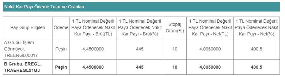 Borsa İstanbul'da temettü yatırımcılar açısında en merak edilen konuların başında geliyor. Borsa İstanbul'da bilançoların açıklanması ile birlikte kâr eden şirketler temettü dağıtmaya devam ediyor. Kâr dağıtım politikasına göre temettü dağıtımı yapacak şirketler arasında yer alan Ereğli Demir Çelik en yakın temettü dağıtım tarihi olan şirket olarak karşımıza çıkmaktadır. Temettü dağıtım Miktarı 7 Milyar TL'yi geçen hisse için Temettü verimi ne kadar? Ne zaman dağıtacak gibi sorular yatırımcılar tarafından sorulan sorular arasında yer alıyor. Tüm detayları ile temettü dağıtımı Ereğli Demir Çelik... En yakın temettü tarihi