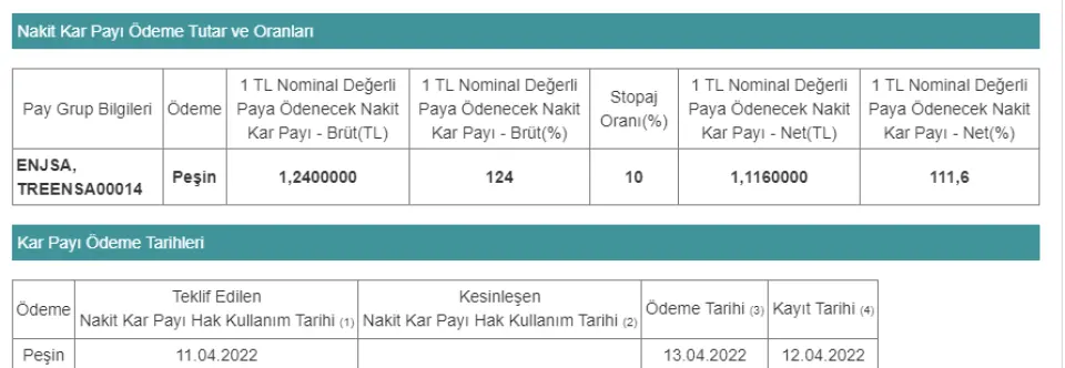 Nakit kar payının 11 Nisan 2022 tarihinde