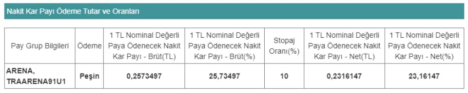 ARENA BİLGİSAYAR SANAYİ VE TİCARET A.Ş. ARENA şirketinin yaptığı KAP açıklamasına göre;